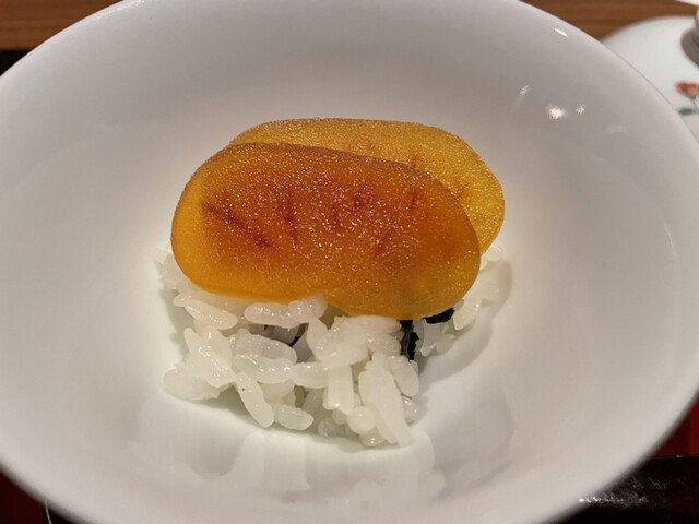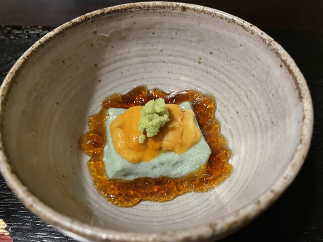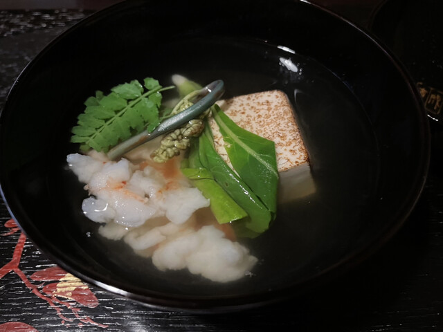よもぎ豆腐から始まり、生からすみ、八寸、椀もの、刺身、煮物、ご飯まで、タイミングよく出していただきました。