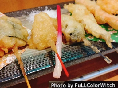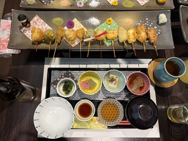 京都祇園にある 串天ぷらのお店 舞妓飯 祇園店 さんへ いただいたのは 十六色のひとくち串天ぷら膳 極み / 3,500yen 基本野菜(7本) ✤湯葉 ✤万願寺とうがらし ✤濃厚カスタード芋 ✤ごま麸 ✤カボチャ ✤茄子 ✤玉ねぎ 旬魚介(3本) ... 詳細を見る