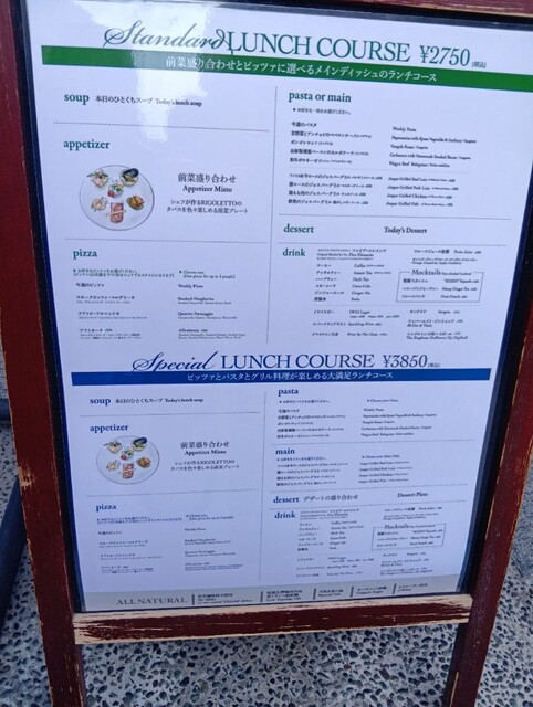 週末のランチはコースのみで、2,750円と3,850...