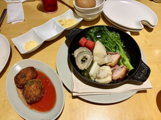 雨の日で客入りは少なめだったように感じた。店員さんがとてもテキパキ動いていて、料理もスムーズに配膳された。いくつか食べた中で、特に美味しいと感じたのが、京野菜の良さを存分に味わえる季節限定のポトフだ。