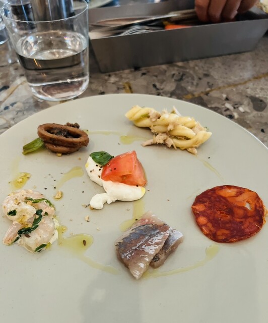「【LUNCH PRIFIX COURSE】一口スープ+前菜盛合せ+選べるピッツア+パスタ+グリルメイン料理 +デザート 全6品」がおすすめです。