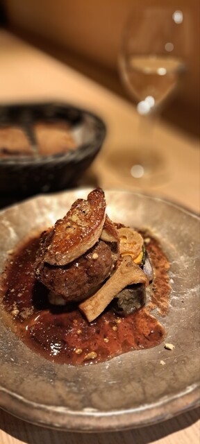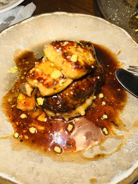 京都牛ハンバーグとフォアグラのロッシーニ風は、口に入れた瞬間に笑顔になってしまうような一皿でした。