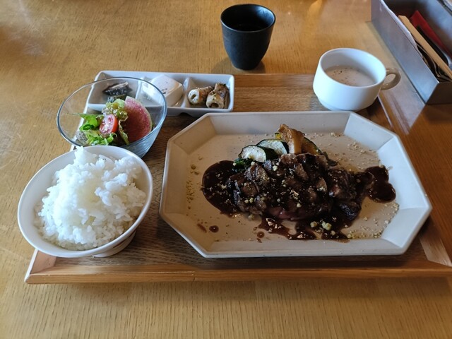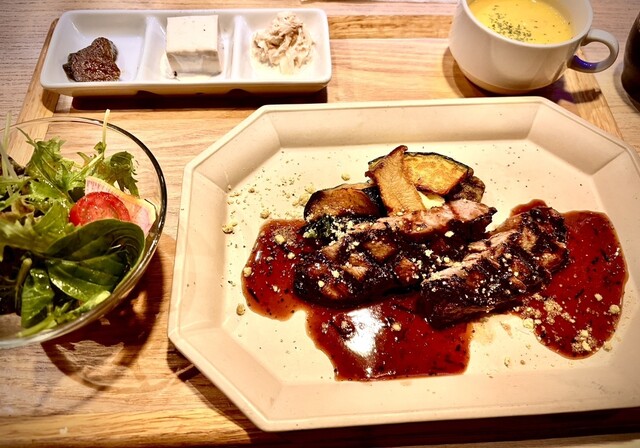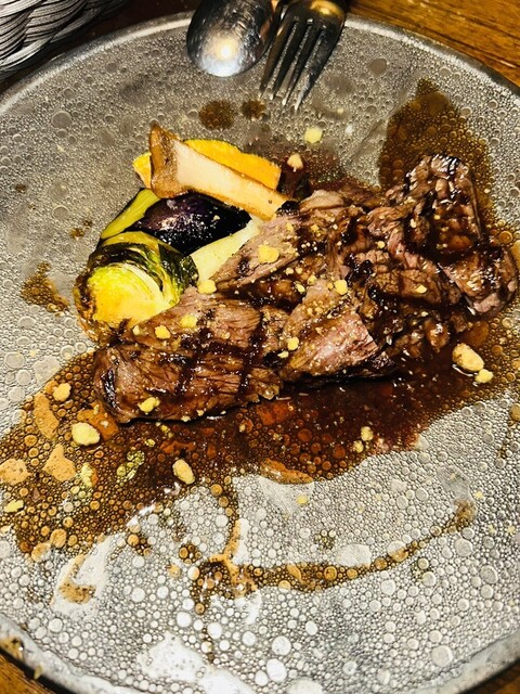コロナ禍で行ってからもう一度来たいと思って念願叶いました!祇園四条駅すぐなのに古民家の落ち着いた雰囲気とご飯にこだわりのお酒が何よりのご褒美です^ ^ランチでロースステーキ定食と赤ワインを注文上質な肉...