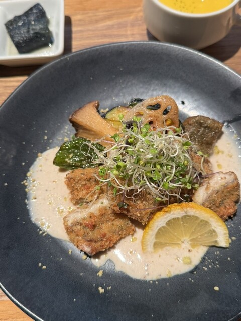 セットメニューがいくつもあって、少し悩みつつ太刀魚のカリッとソテーしたお料理を選びました