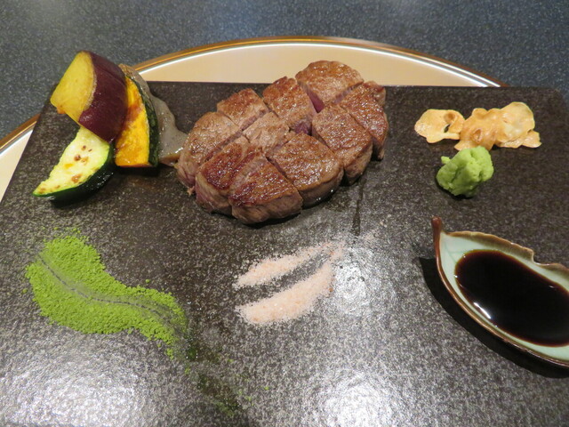 甲部祇園、三芳さんと今さんの間、今さんの隣の隣にあるステーキハウスです。カウンター席のみですが10人位は入れる感じです。英語表記も多く、外人さんの飛び込み?が多い感じでした。サーロインがお勧めという事で、ミディアムレアで注文しましたが、オーソドックスなステーキハウスのお味でした。