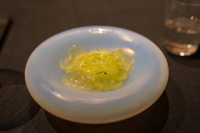 オープン1年目でミシュラン京都・大阪1ツ星を獲得し、祇園の街で食通らの耳目を集めているフレンチ【祇園 呂色】。小霜浩之シェフのお店です。料理は、フランス料理の技法を大切にしつつも、京都というイメージに相応しい和を取り入れたコース。食材の個性を活かし引き出しているのが特徴です。呂色のカウンター上で繰り広げられるプレゼンテーションは圧巻。
