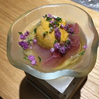京都・祗園。町家をリノベした風情ある空間で楽しめる【段ばた】の料理はすべてが独創的。日本の四季を表す二十四節気をテーマに、走り・盛り・名残りの吟味した食材を組み合わせ、月に2回替わるコースで提供。上花鰹と利尻昆布でひく凛と澄んだ和出汁をベースにしつつ、フレンチ・イタリアン・中華の技を織りまぜた自由闊達な皿が、初めて出会う美味に誘ってくれます。ランチコースは6品 5000円、ディナーコースは9...