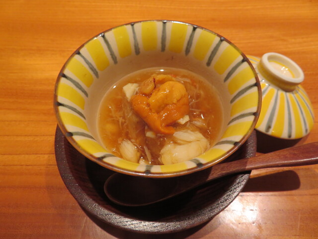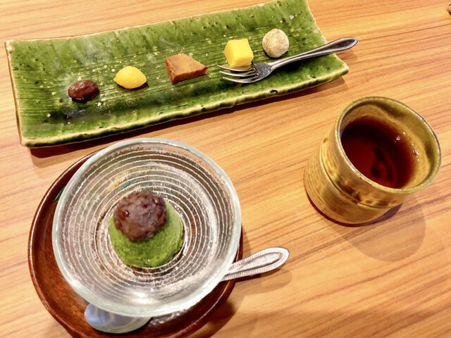 一人15,000のコース(飲み放題付き)のみ、旬の食材をつかった約10品の内容。 |