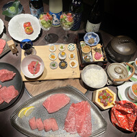 人気の新鮮近江牛のユッケに始まる特別な宴。系列店 祇園肉亭新より取り入れた和食のエッセンスと創作料理の数々。 焼き肉以外の部分でも魅力的なお料理のご用意が可能になりました。 贅を尽くした近江牛の極上部位の数々。趣ある町家空間の中、思い思いの素敵なお食事の時間を存分にお愉しみくださいませ。