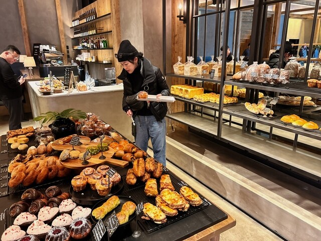 夜は営業していませんが、朝から夕方にかけて焼きたてのパンが販売されており、なんとホテル内で焼いているとのこと。朝ロビーに降りると、ふわっと香ばしいパンの香りが広がっていて、それだけでも贅沢な朝の時間が始まります。