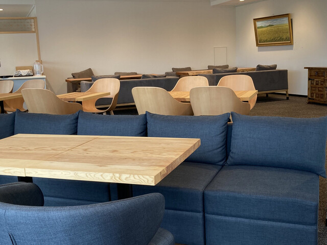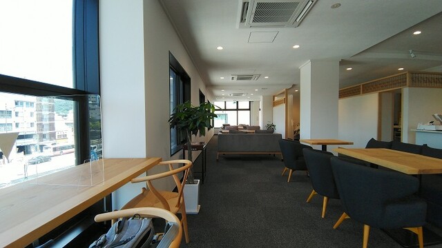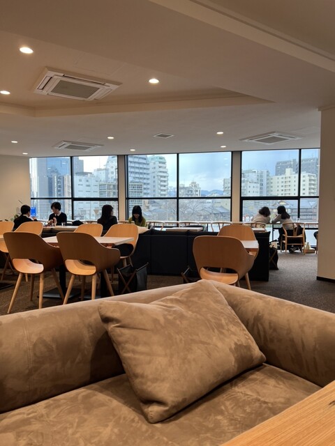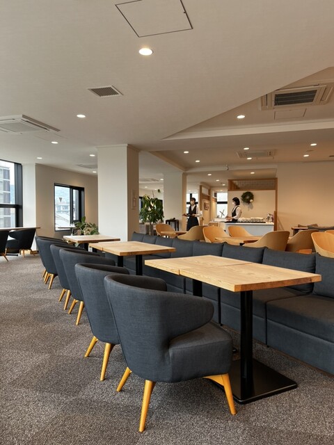 カフェスペースはとても広々としていてソフ...