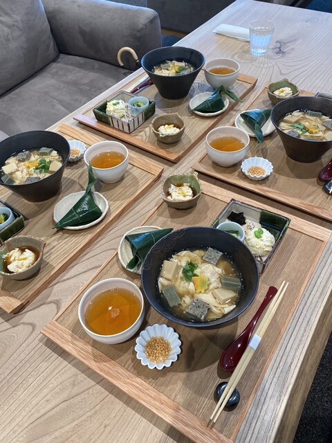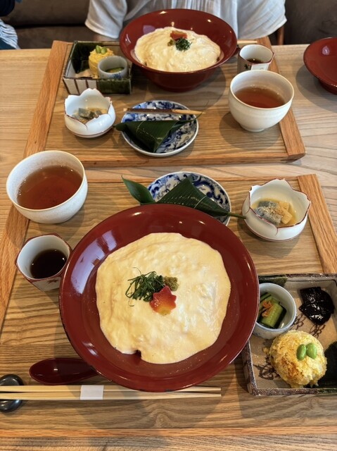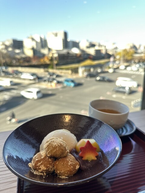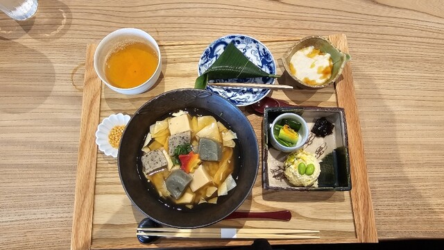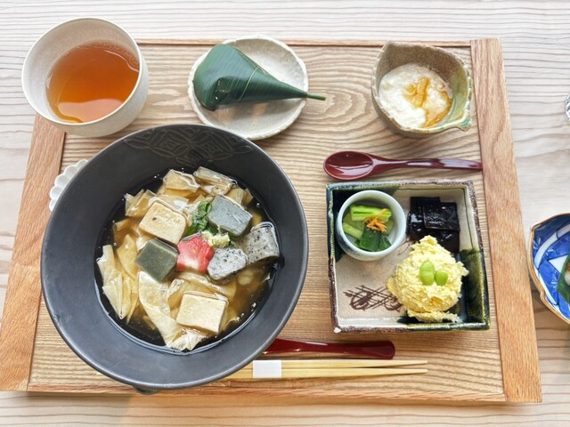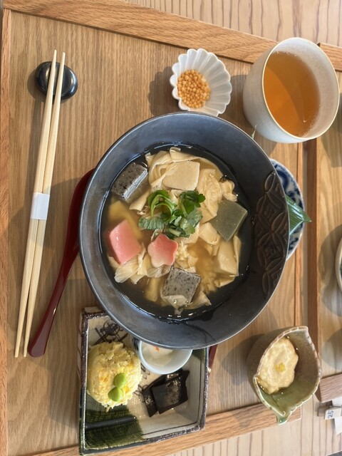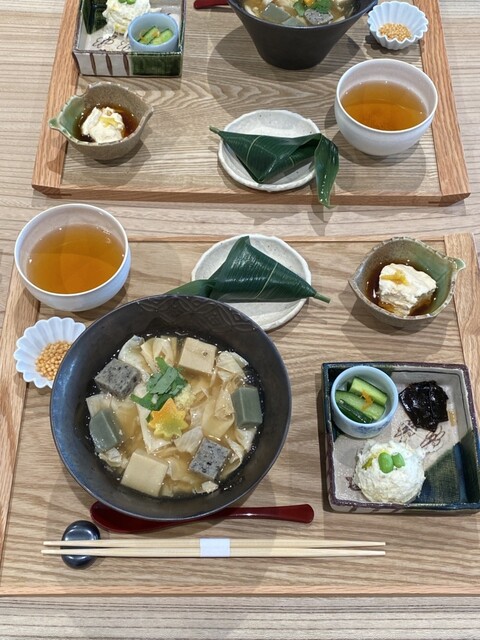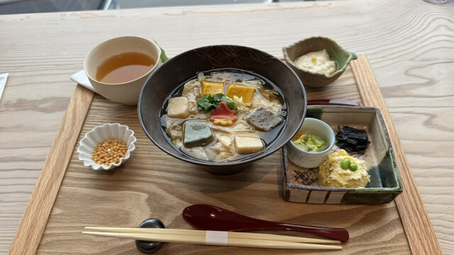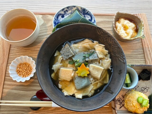 京都ならではのあんかけ湯葉と生麩のランチを食べました。小鉢で...