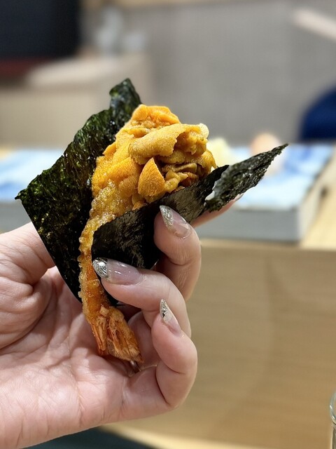 赤酢のご飯に合う鮨ネタを厳選して頂いていると感じながらも、海老に雲丹を山盛りはインスタ映えのするものになっ...