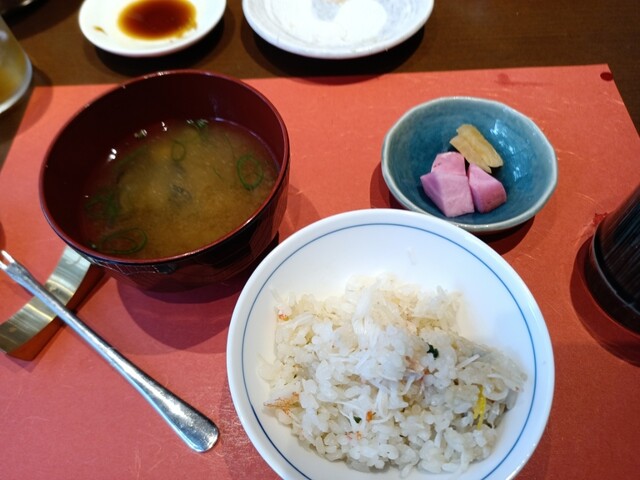 ボイル蟹半身でトロが入った海鮮丼付いた6,600円のランチで、ランチには刺身と茶碗