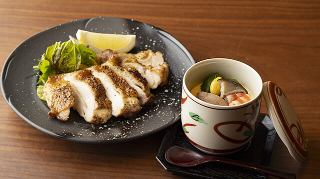 丹波地鶏の炭火焼、特製茶碗蒸し (by お店)