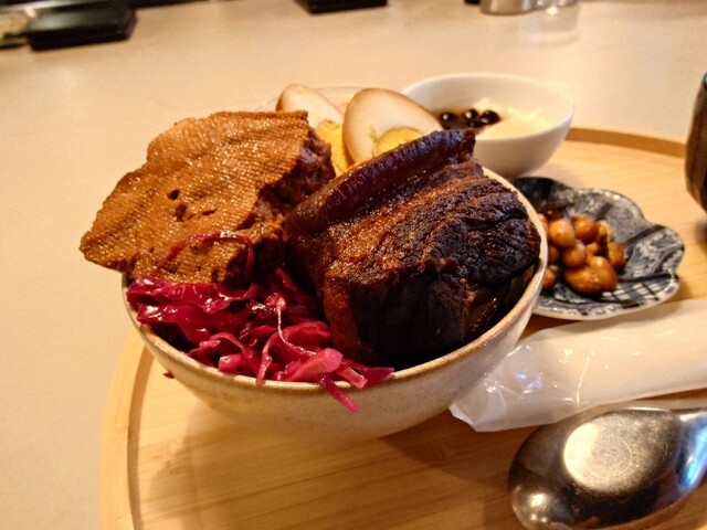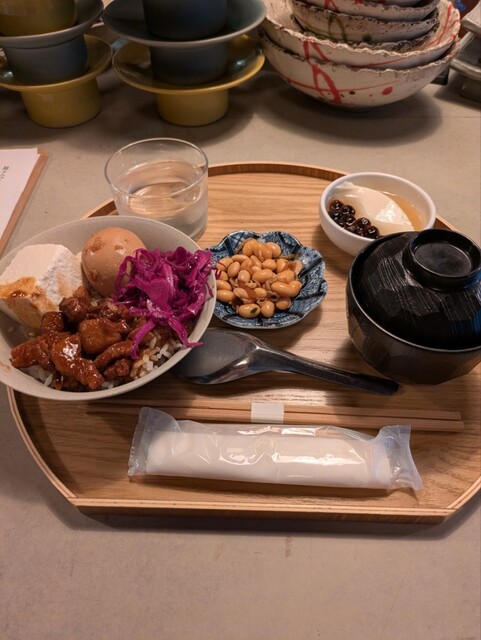 お昼の注文は ◉鬼とうふランチ 木綿豆腐と豚角煮丼 小鉢、油揚げのお味噌汁 ミニ豆花(+400円で大きく可能) ・まずはレジにて注文してからお好きな空席に座ります。お膳にお水も用意されますが、お水はその後はセルフ ・八十八良葉舎、糖太郎の系列店 --店舗情報---... 詳細を見る