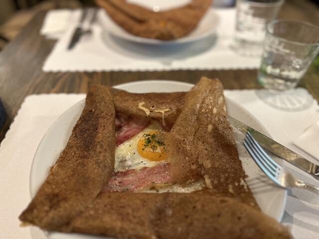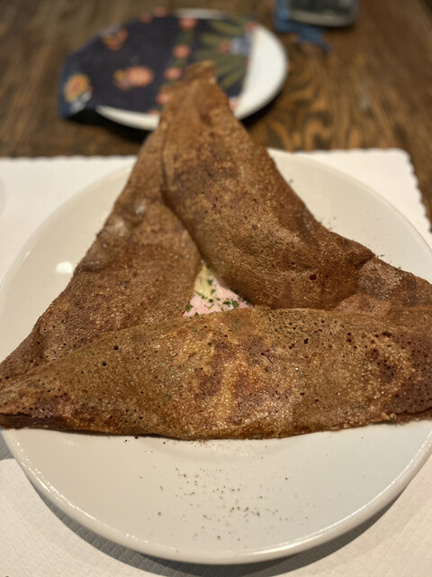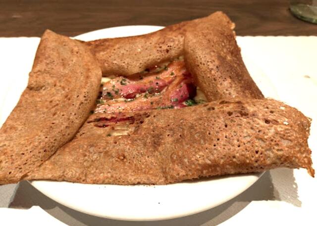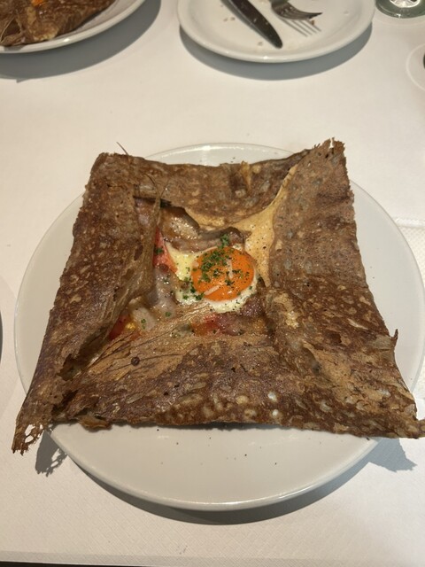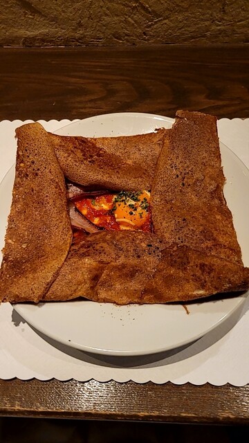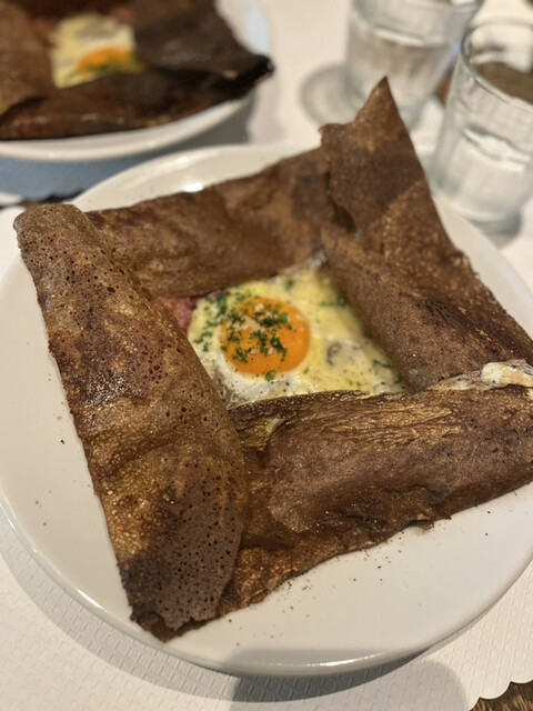 ガレットランチ。本当にフランスのビストロで食べているような、シンプルだけど本格的な味。前菜はパテ、ガレットはハムと卵とチーズにしました。ガレットも外側パリっとしていて中味はとろっとしており,大変美味で...