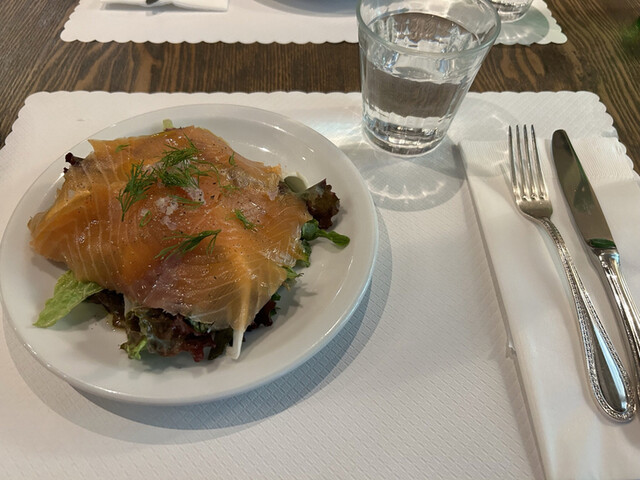 ガレットのセットを注文しました。最初のサーモンのサラダもおいしかったです。