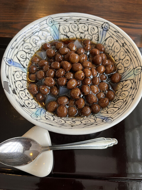 銀閣寺から歩いてすぐの場所に位置する豆かんが有名な甘味処で、平日でも満席になるほどの人気です。