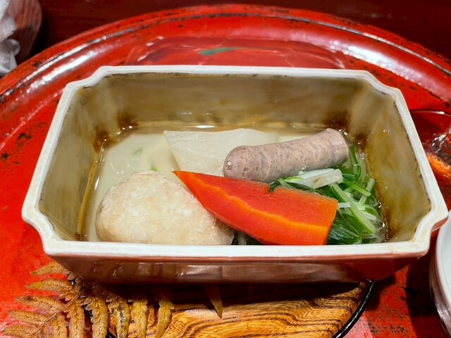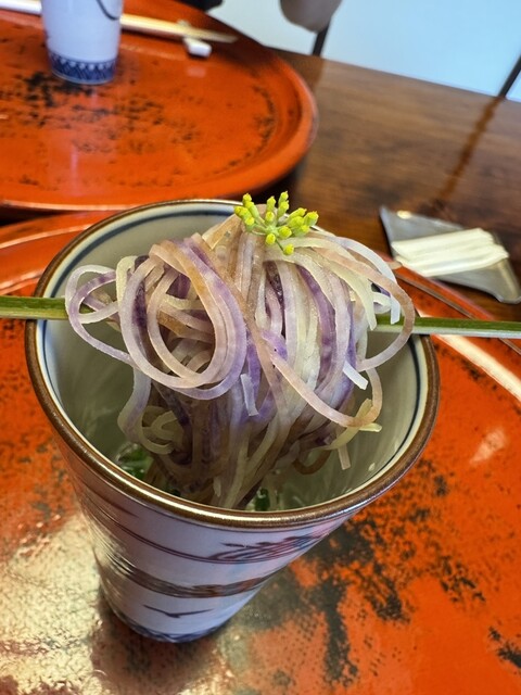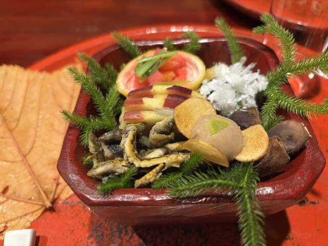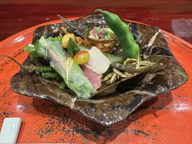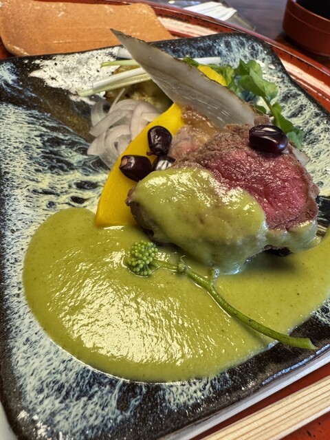 伝統的な素材(琵琶鱒、鮎、鯉と、独創的な調理法(きゅうりのムース、目玉のおやじシャーベット)が見事に調和しており、単なる食事を超えた「食の体験」を提供していることが伺えます。季節の素...