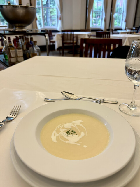 ここが大学とは忘れる優雅な空間。お客は年配者が多い。ランチコースをいただきました。店員の方もきちっとされて...