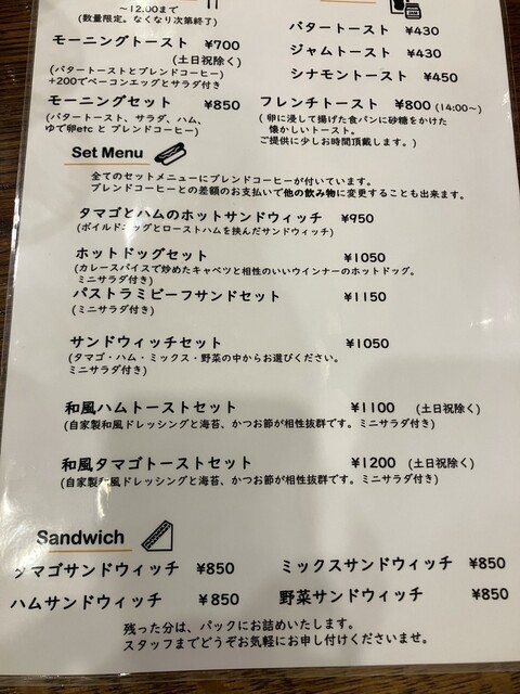 | ジャンル | 喫茶店、サンドイッチ、カフェ |