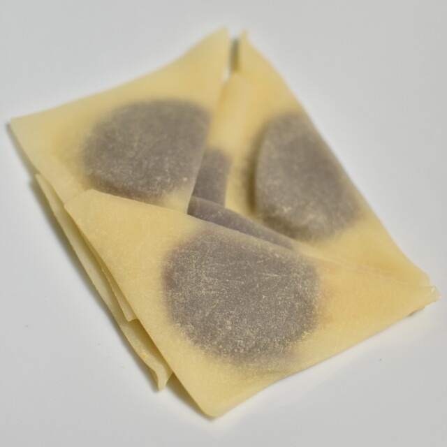 本家西尾八ッ橋といえば、ニッキ(シナモン)の香る伝統的な八ッ橋が有名ですが、今回いただいたのは、もちもち食感の生八ッ橋に餡が入った「あんなま」シリーズ。