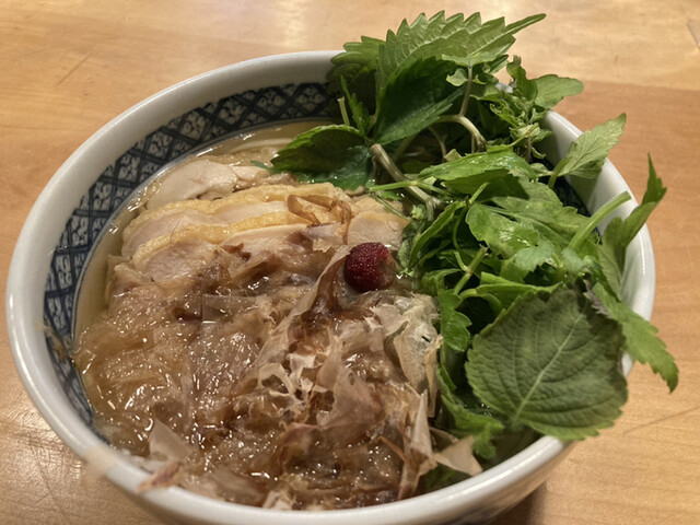「お昼は、おうどん」を掲げ、ランチ時間には細うどんと鯖寿司を提供しています。