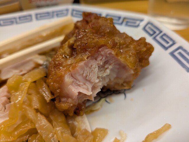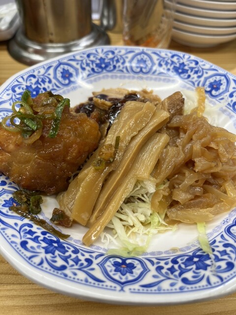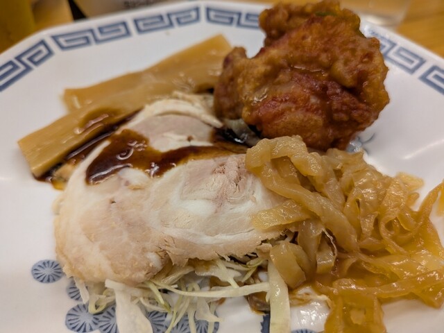 どんぶりには、チャーシュー、メンマ、刻みネギが盛り付けられておりスープは透明度の...