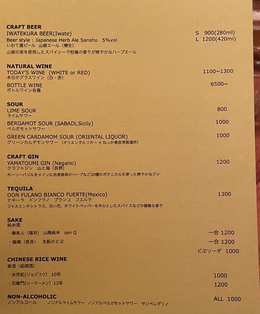 意表を突く味付けのオンパレードで、驚きの連続でした。同行者がお肉が苦手という事もあり、すべて肉系以外のお料理にしましたがあっという間にすべて平らげてしまいましたwちょっと濃いめの味付けなので、お酒もすすみます!!美味しゅうございました♪ごちそうさまでした。