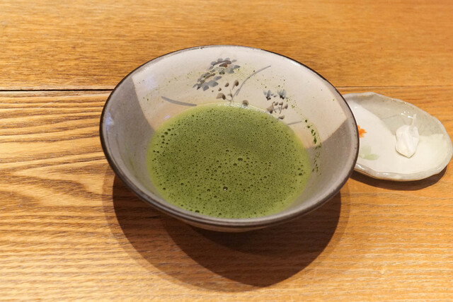 お店に入るとお抹茶でお出迎えしてくれます。
