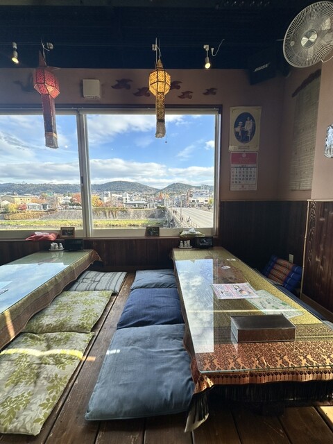 更に新メニューが増えました!ちょっとマニアックなラオスやイサーン系の料理から定番のタイ料理まで充実!大きなマドから鴨川と東山の景色を楽しみながらのお食事をどうぞ!