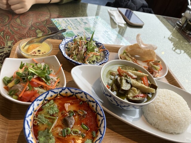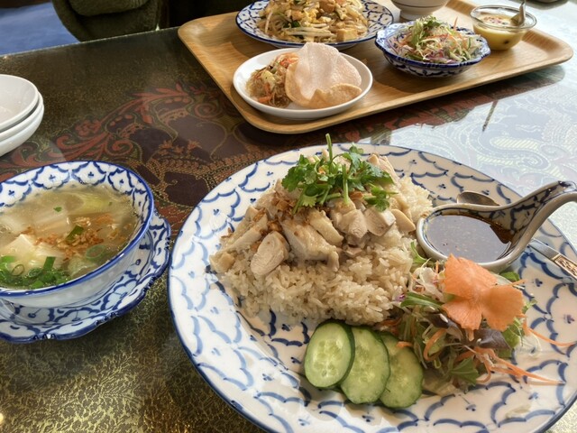 カオマンガイ(単品)、グリーンカレー、パッタイ(いずれもランチセット)を