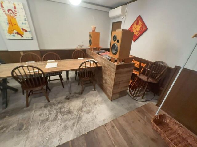 中央には店全体に渡る長いテーブル席があって、複数人数のお客さんは向かい合って詰めて着席...