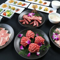 創業当初から愛される、秘伝のつけだれで食べる京都焼肉をご提供。三層のサーロインロースがとろける味わいの「ミルフィーユロース」は名物料理です。ソムリエ厳選のワインなど豊富なドリンクとともにどうぞ。また贅沢食材を盛り込んだコースでは、要予約でメッセージ入りデザートプレートのご用意も可能。デザイナーが手掛ける豪華な店内は個室完備で、接待、企業宴会から、記念日やお祝い、ファミリーでのお食事にも最適です。