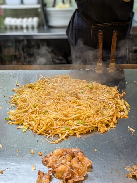 <2025年10月> ●肉玉そば+大葉+チーズ ●肉玉うどんスペシャル(生イカ、生エビ) ●ネギ焼き麺なし ●ポテトサラダ ●バニラアイス お好み焼きの美味しさはもういつも通りで。 味変に辛口ソースや一味唐辛子使いましたがそのままで十分美味しいです。 前回は子どもたちが私に一口も... 詳細を見る