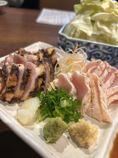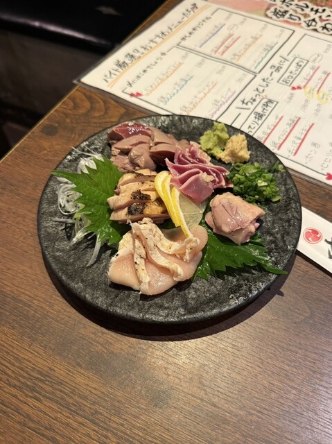 西院駅すぐ近くにお店があります。 この日はとりやきセット ¥3,900をいただきました。 2人前から人数分注文できます✨️ 内容はこんな感じ↓ 〇朝引き鶏刺身盛り合わせ この日はむね・もも・砂ずり・こころ・肝でした✨️ どれも新鮮で美味しすぎる! ポン酢やお醤油、ごま油塩など好... 詳細を見る