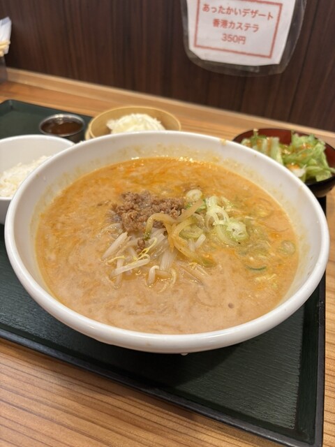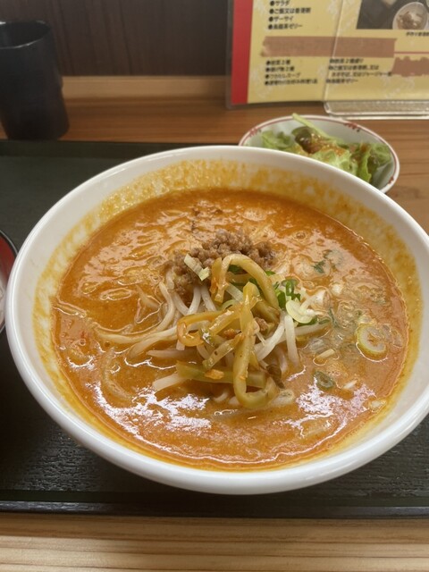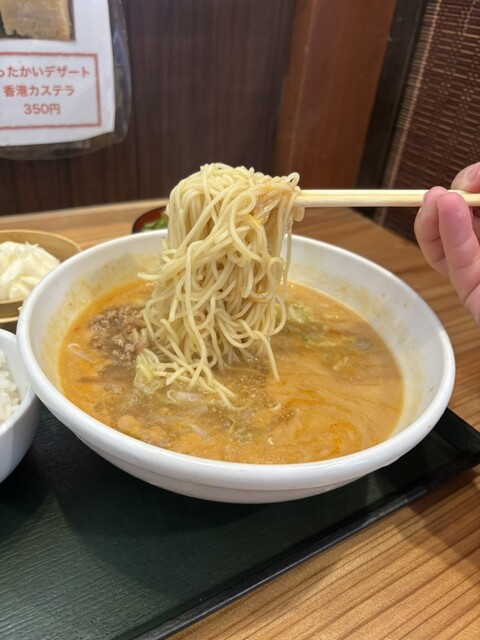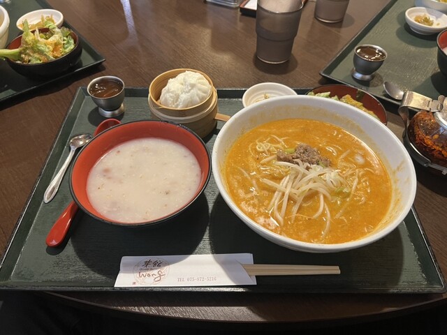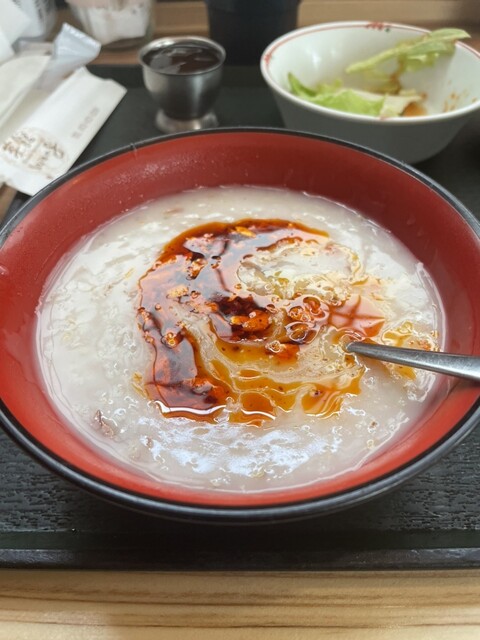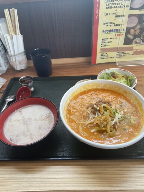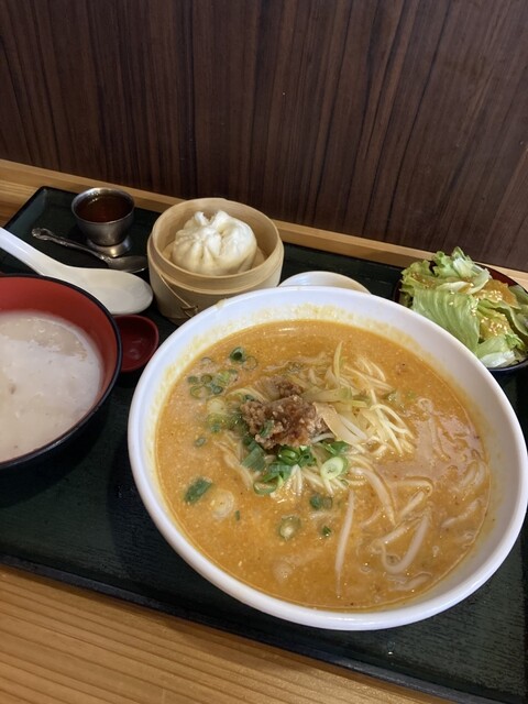 担々麺とお粥のセット(1,200円)をいただきました 担々麺のスープから 粗すりごまのプチプチを感じながらの酸味が効いてて、辛さ少な目のスープ 想像の辛さ&ゴマペースト甘... 詳細を見る