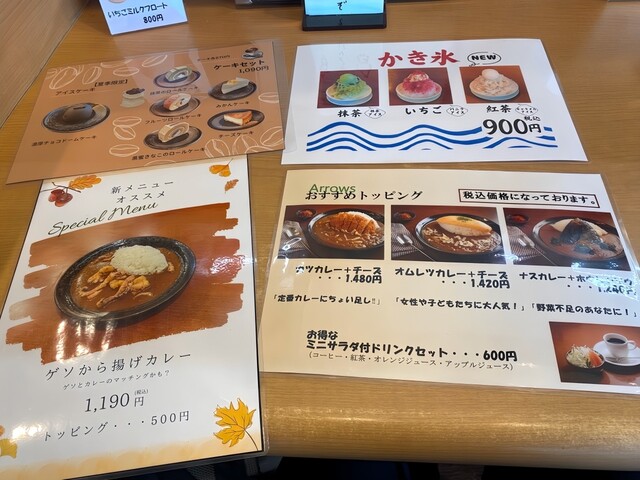 モーニング・ランチ・カフェ・ディナーと利用可能な【アローズ】。自家製の欧風カレーが自慢で、トッピングを豊富に揃えております。その他丁寧に淹れたコーヒーもご用意。近所の方や観光客の方に愛される当店は、ネオレトロな雰囲気で20~30代の方にもおすすめです♪テイクアウト可能で、11月中旬には新店舗がオープン予定となっております。ディナーにも最適な居心地の良い空間で、素敵なひとときをお過ごしください。 |