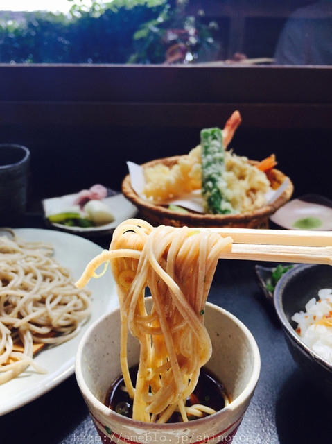 嵐山の素晴らしい景観を望む、石臼挽き国産そば粉を使用した手打ち蕎麦の店