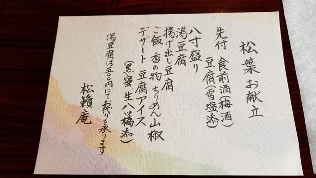 | 店名 | 松籟庵 (しょうらいあん) |