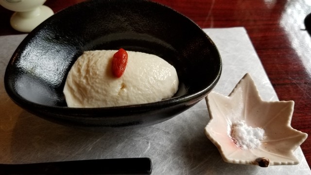 ・先付け:食前酒と豆腐(雪塩添え)
