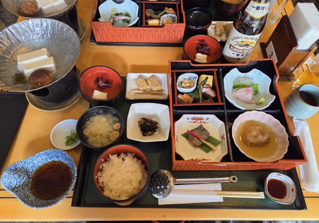 国産大豆100%使用の湯豆腐や季節のお鍋がセットになった松花堂弁当や