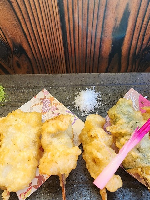 桂川沿いにある串天ぷらのお店。