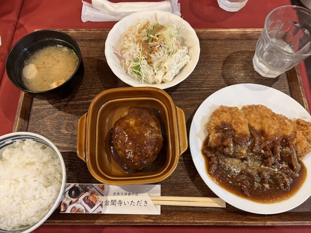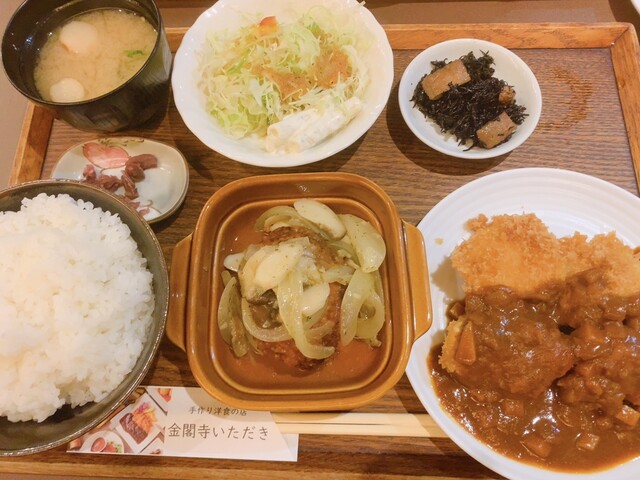 お昼は日替わりランチ1000円などボリュームたっぷり地元の人も沢山訪れる本格的な洋食屋。お料理はすべて手作り。自慢のデミグラスソースやタルタルソースを是非! 夜は1350円~の選べるセットメニューがお好きなお料理2品選べて大変お得です。 場所は金閣寺正門より南へ徒歩1分。駐車場も少し離れますが3台分ご用意いたしております。 ご来店待ち致しております!! 第四火曜日を定休日とさせていただきます。