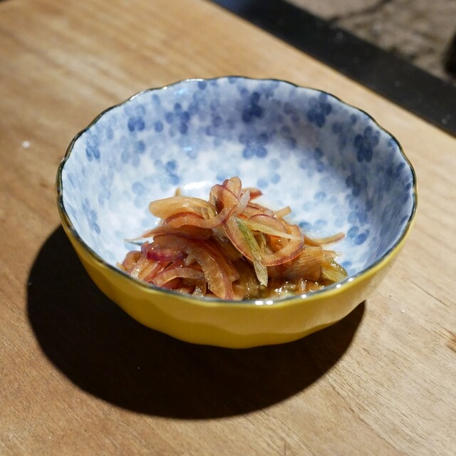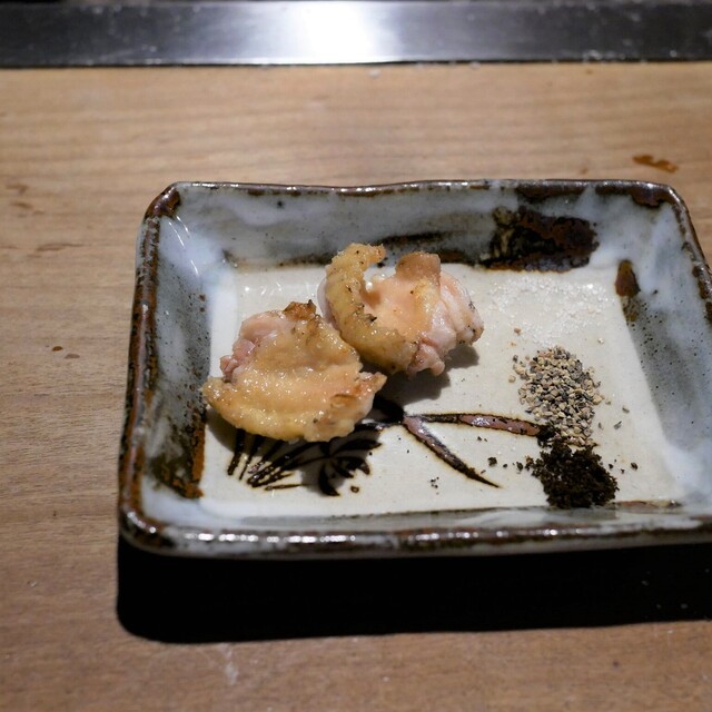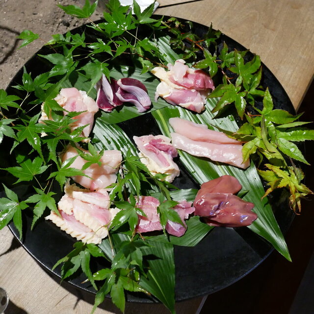 まずは小鉢が出て来まして、そこから今日裁いたばかりの鶏がお皿に載せられてきまし...