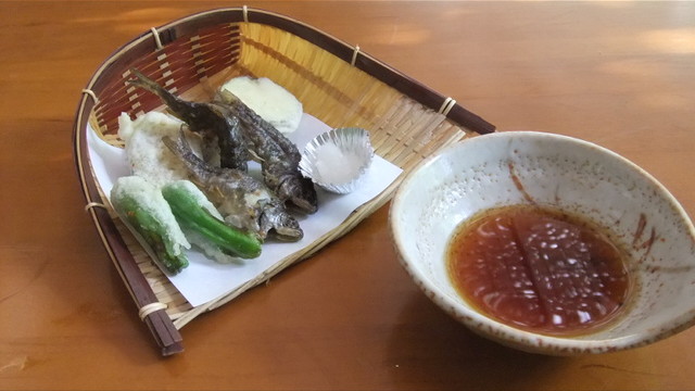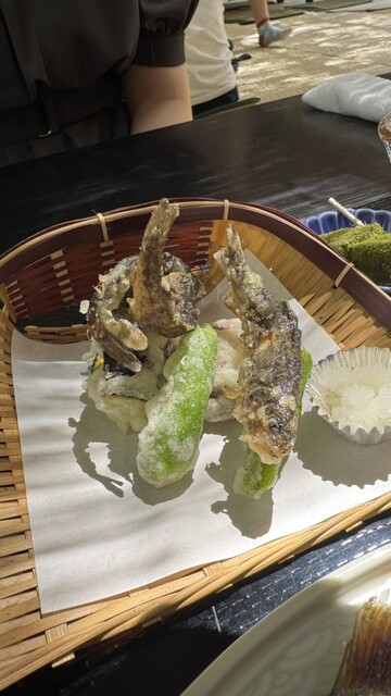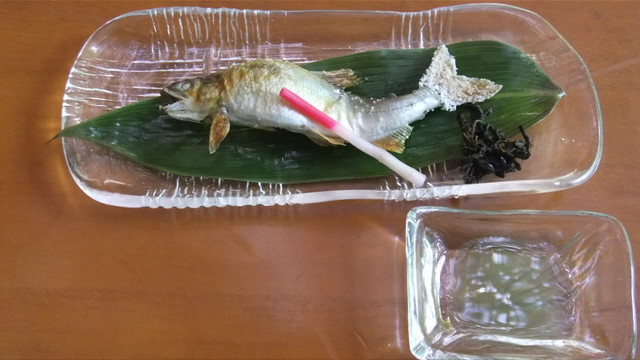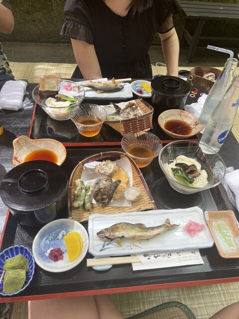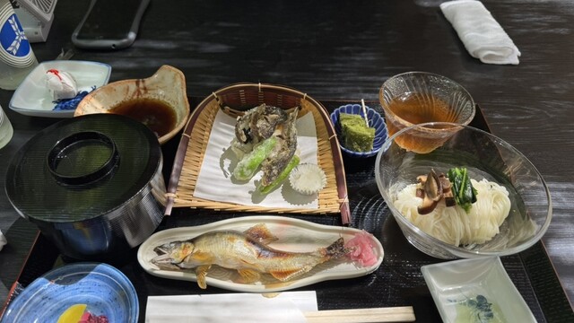 鮎の塩焼きをメインに素麺と天ぷらがついた御膳。