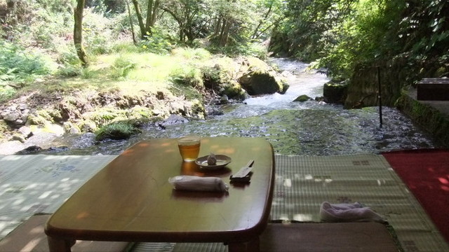 当日は気温が30℃を優に超える暑い日でしたが、やはりここは川床。