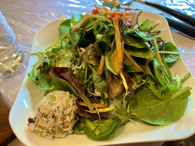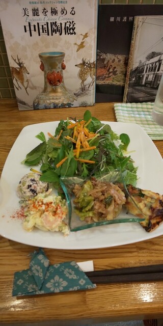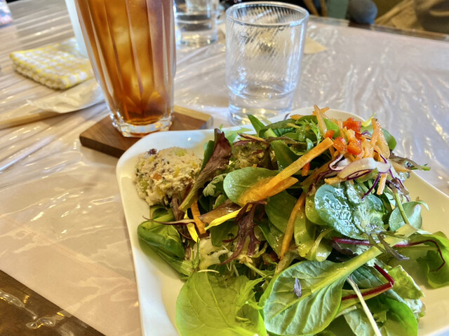 前からお店があることは知っていたのですがやっと初訪問。時間が無くて「一番早くできるもの」とお尋ねし、日替わりランチをいただきました。普通のカフェ(お茶メイン)と思っていたらとても立派な女性好み目線のオシャレなランチ~♪お店の前の植物の飾りつけもオシャレです。おかげで約束に間に合いました。ごちそうさまでした