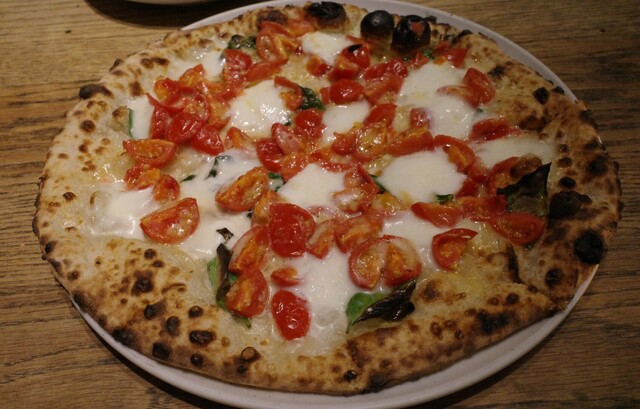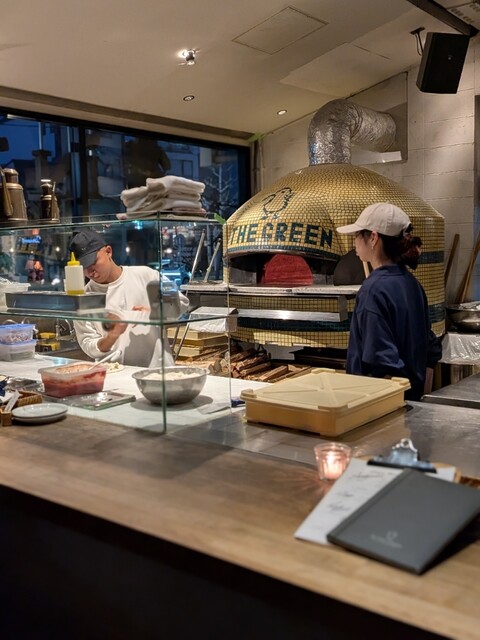 入ってすぐにあるオーダーメイドと思しきピザ窯に目を奪われながら席へ。